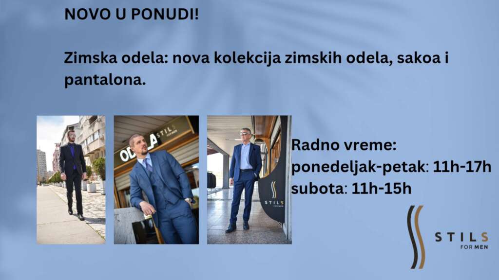 Beograd je grad koji živi brzo i intenzivno, a Stil S odela prate upravo taj ritam. Naša nova kolekcija namenjena je modernom muškarcu koji želi da izgleda uredno i elegantno, bilo da ulazi u kancelariju, priprema se za važan sastanak, ide na razna slavlja i svečane prilike. Svako odelo iz kolekcije nosi pečat bezvremenskog stila, ali i praktičnosti i topline koja je neophodna u hladnim zimskim danima.